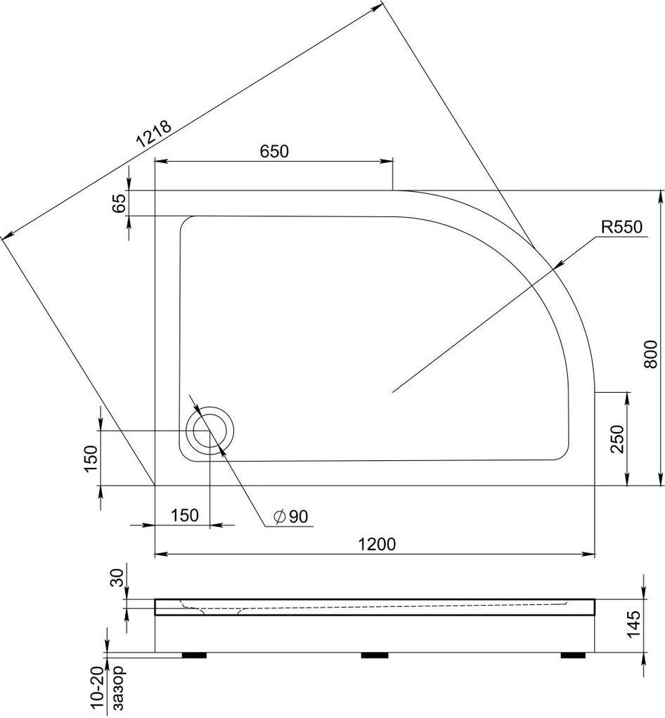 Акриловый поддон Bas Раунд R 120x80 см R