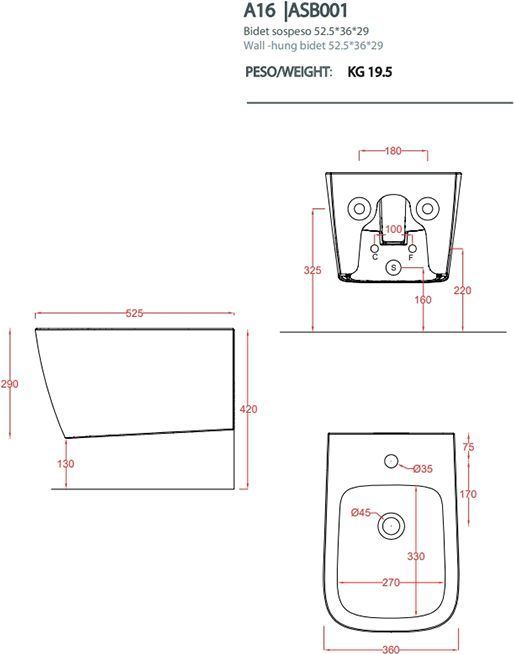 Характеристики биде подвесное ArtCeram (ASB001 41 00)