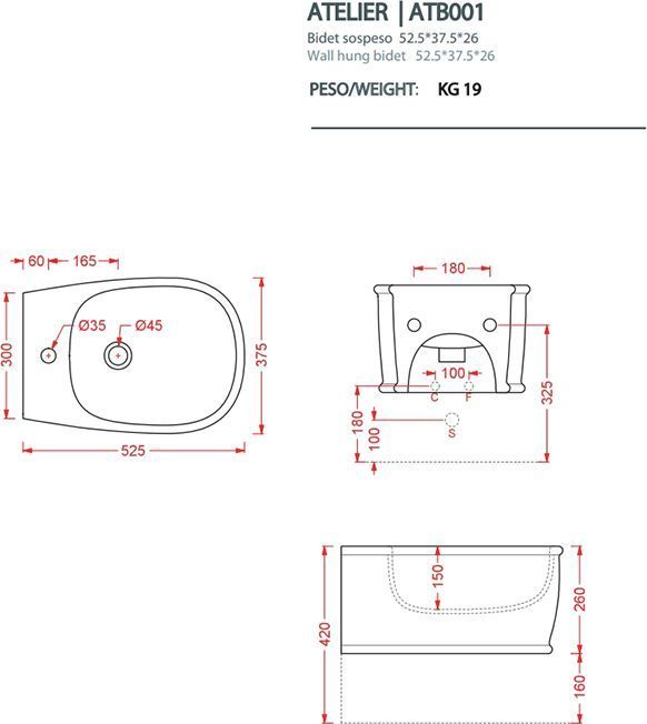 Описание биде подвесное ArtCeram ATB001 41 00 *1
