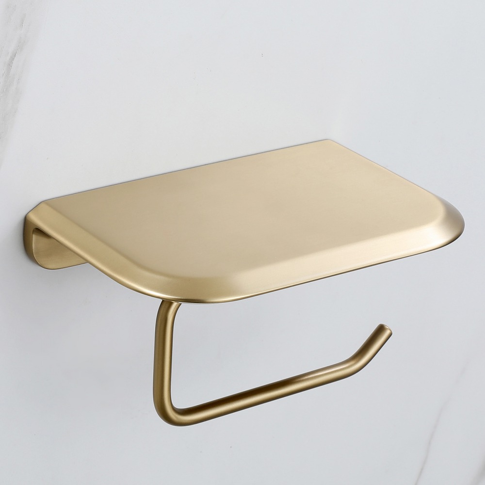 Держатель для туалетной бумаги Abber Nord AA1530G с полкой для телефона, материал нержавеющая сталь, цвет золото матовое.