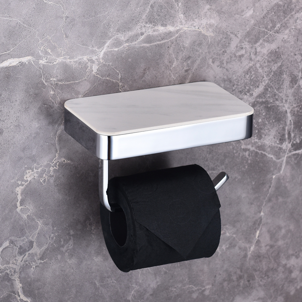 Держатель для туалетной бумаги ABBER Westen AA1730 с полкой для телефона, материал нержавеющая сталь/керамика, цвет хром.