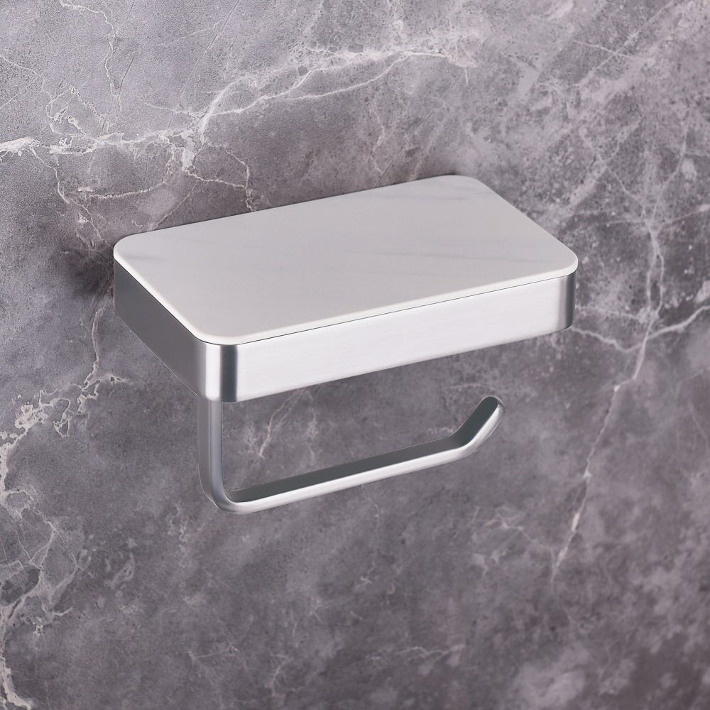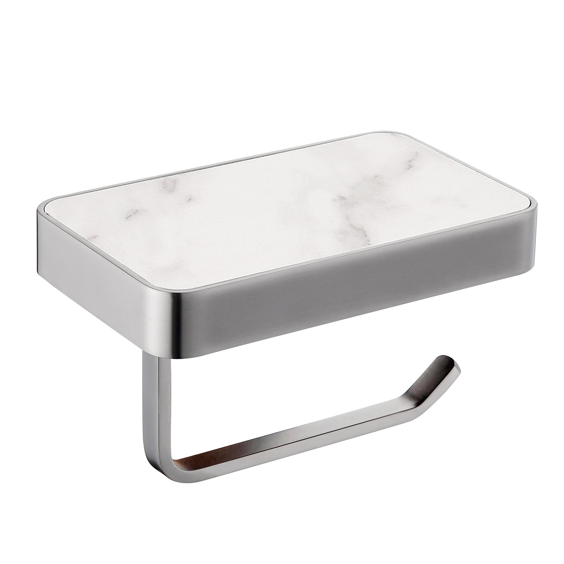 Держатель для туалетной бумаги ABBER Westen AA1730SP с полкой для телефона, материал нержавеющая сталь/керамика, цвет сатин.