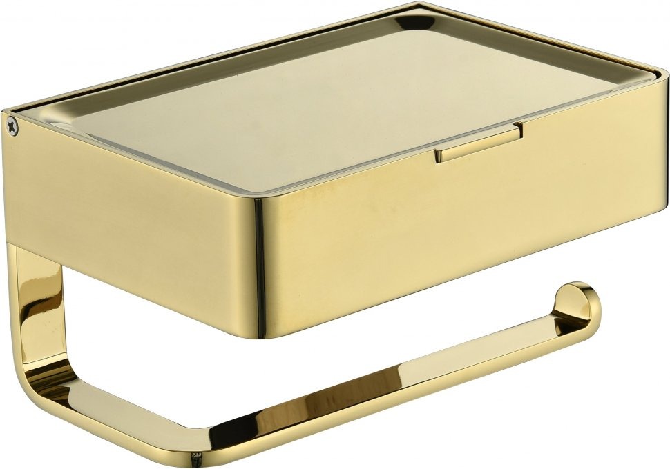 Держатель для туалетной бумаги Grocenberg AC0050GO с полкой для телефона, материал латунь, цвет золото.