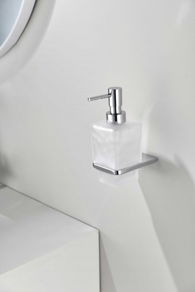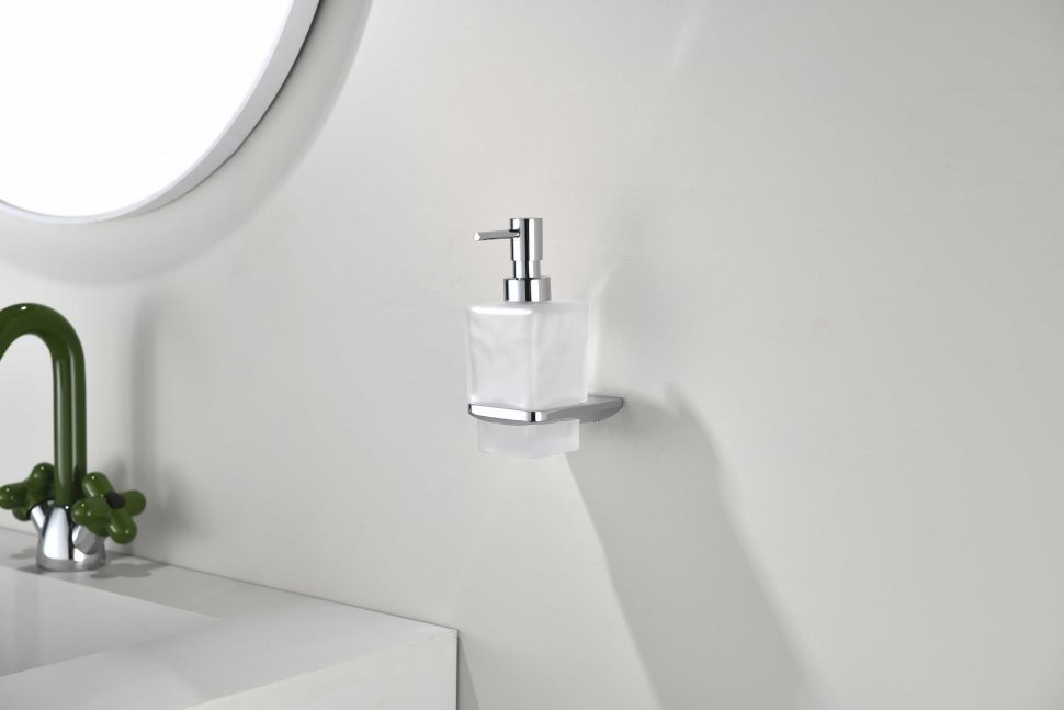 Дозатор для жидкого мыла Grocenberg AC0064CR с настенным держателем, материал латунь/стекло, цвет хром.