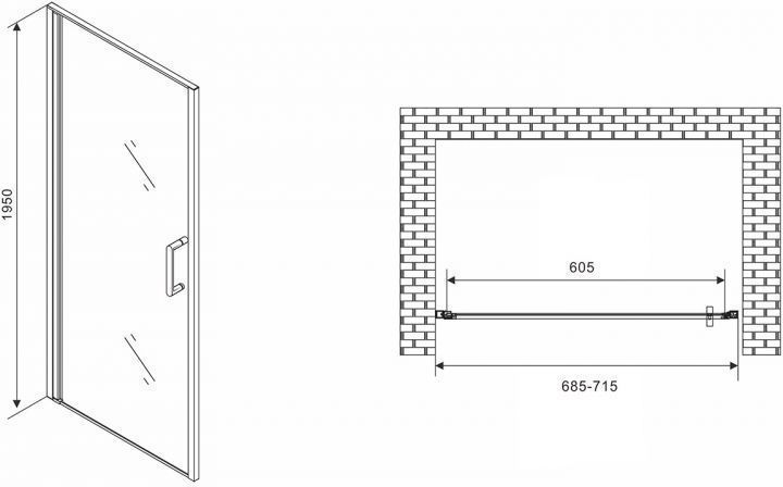 Душевая дверь Abber Sonnenstrand, размер 700х1950 мм, профиль хром, стекло матовое 6 мм. Габариты регулировки (685-715)х1950 мм. Душевой поддон приобретается отдельно.