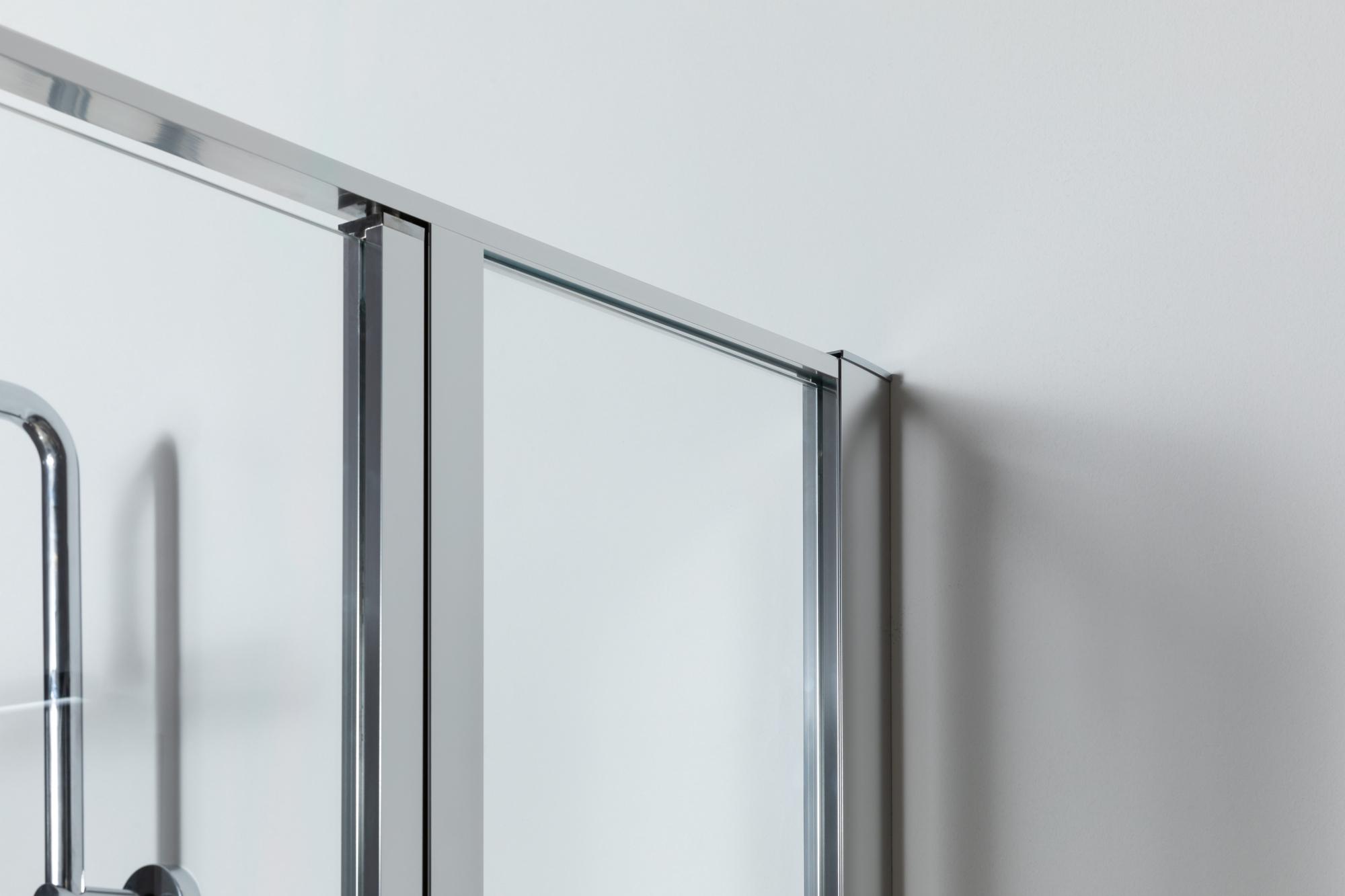 - Тонкие алюминиевые профили с хромированным покрытием придают двери визуальную легкость.