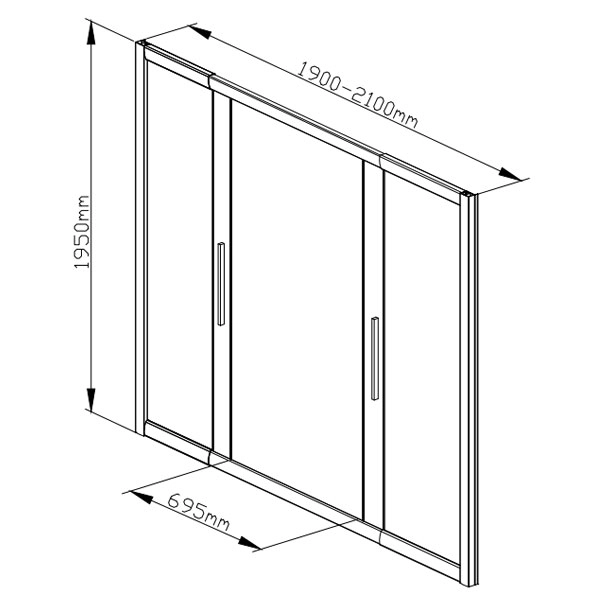 Душевая дверь Avacan FB2-190, размер (1900-2100)х1950 мм, профиль чёрный, стекло узор. Вход 695 мм, габариты регулировки (1900-2100)х1950 мм.