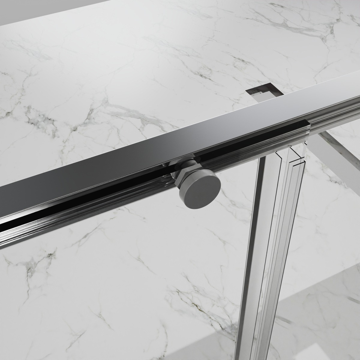 - Дверь в нишу Раздвижная, с универсальной (L/R) откатной дверью, на двойных роликах с нержавеющими подшипниками. Ручки выполнены из латуни в цвет профиля.