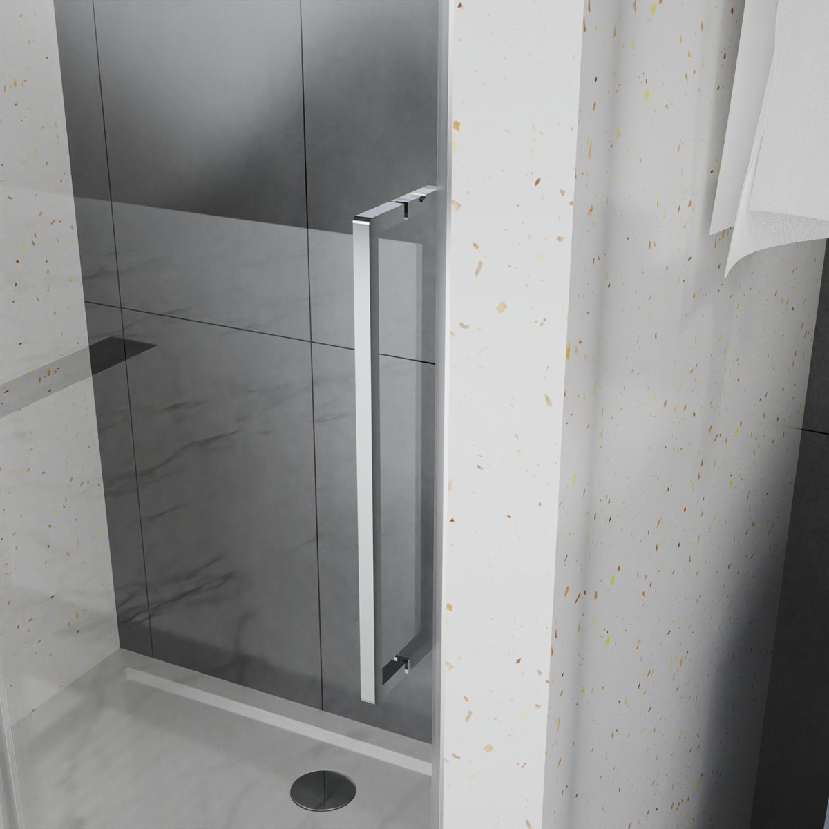 • Дверь в нишу Раздвижная, с универсальной (L/R) откатной дверью, на двойных роликах с нержавеющими подшипниками. Ручки выполнены из латуни в цвет профиля.