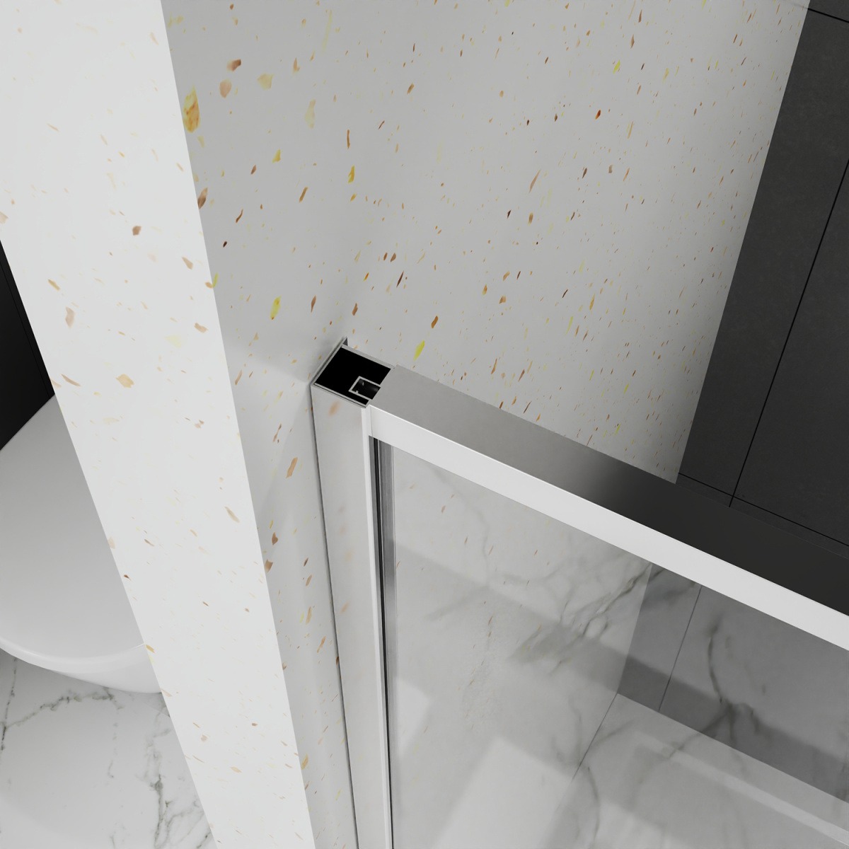 • Дверь в нишу Раздвижная, с универсальной (L/R) откатной дверью, на двойных роликах с нержавеющими подшипниками. Ручки выполнены из латуни в цвет профиля.