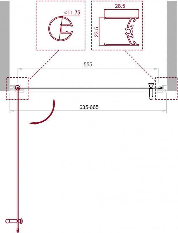 - Регулировка ширины предусмотрена за счет боковых профилей