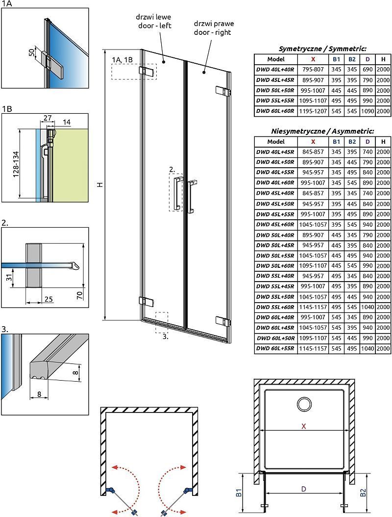 Душевая дверь Radaway Arta DWD 950х2000 мм, размеры с диапазоном регулировок: 945-957 мм, ширина входа - 840 мм, стекло - прозрачное 8 мм, профиль - хром. Душевой поддон приобретается отдельно.