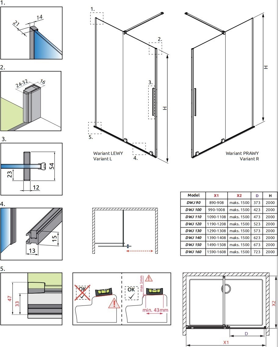 - Безопасное закалённое стекло толщиной 8 мм, согласно стандарту PN:EN 12150:1