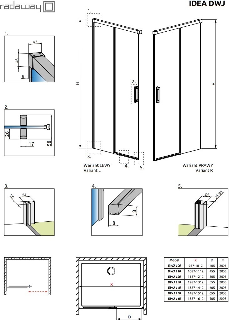 Душевая дверь Radaway Idea Gold DWJ 1600х2005 мм, стекло - прозрачное 6 мм, профиль - золото. Душевой поддон приобретается отдельно.