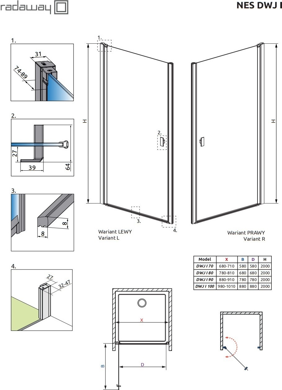 Описание Душевая дверь Radaway 10026070-54-01L