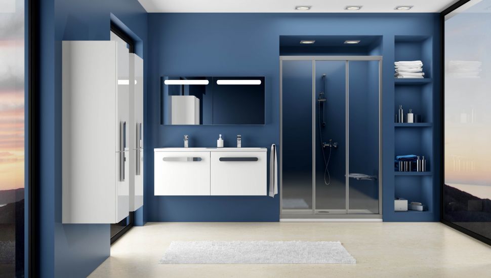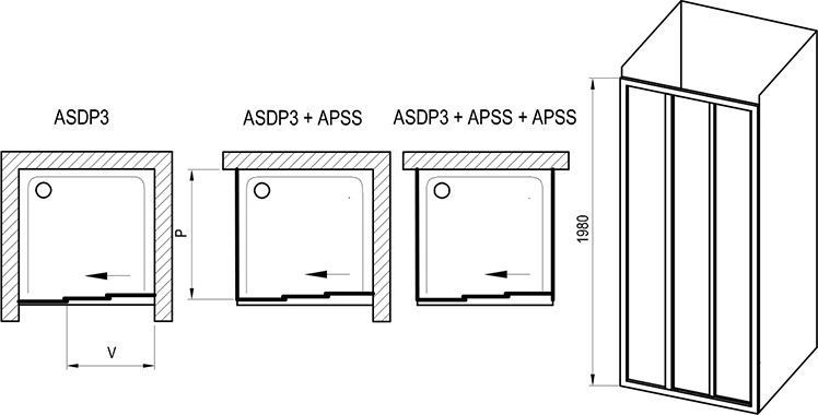 Душевые двери 90х198 см раздвижные, трехэлементные Ravak Supernova ASDP3 - 90, профиль - белый, витраж - Pearl, вход 461 мм.