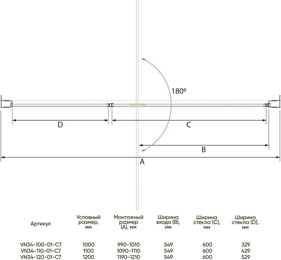 Описание Душевая дверь Veconi VN34-110-01-C7
