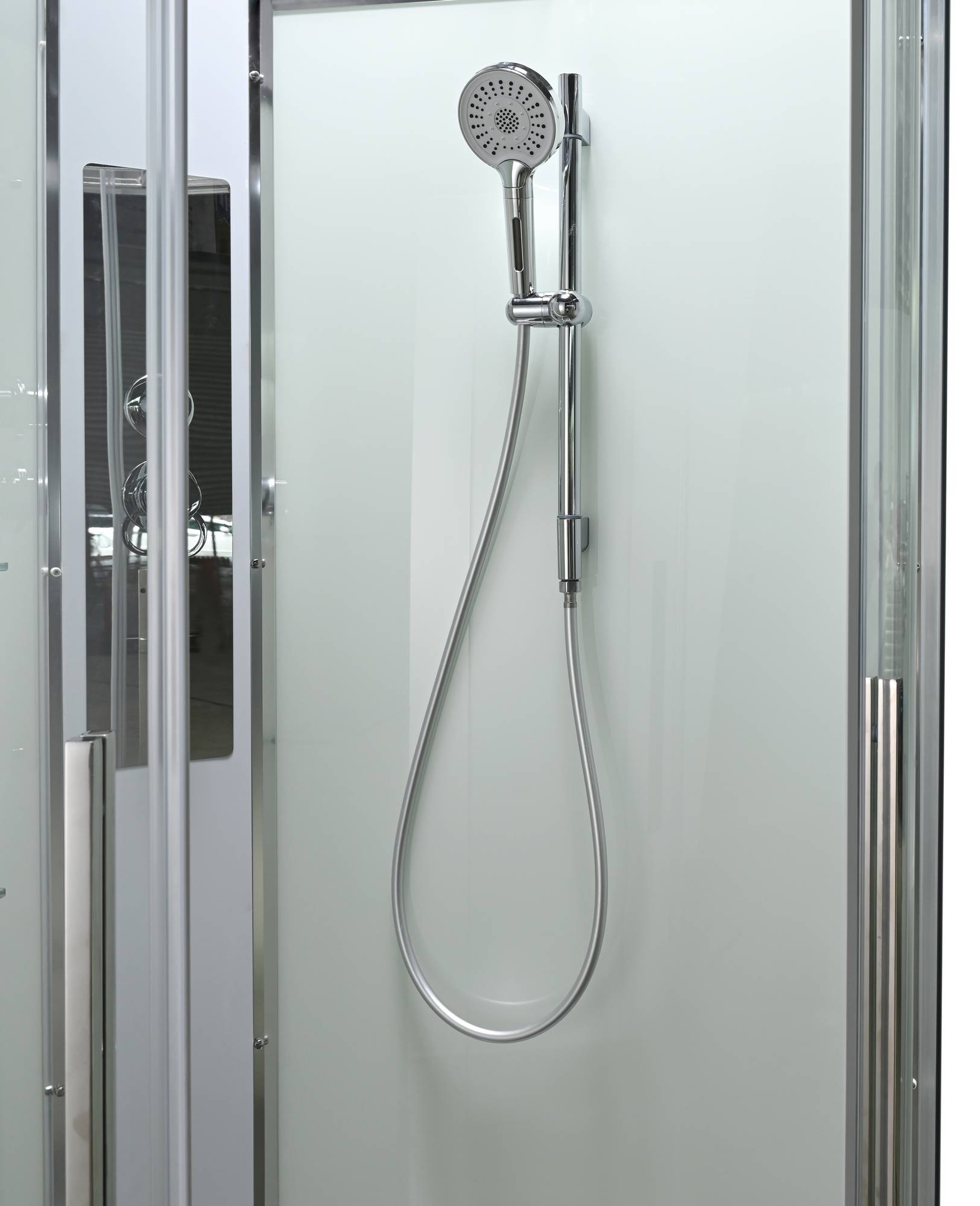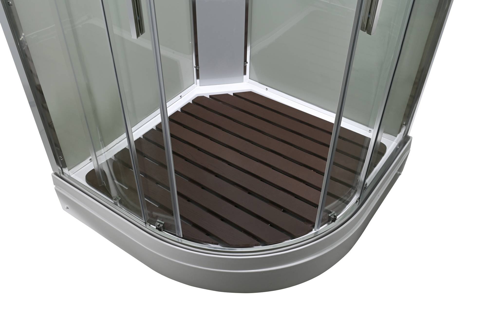 Стильная душевая кабина AvaCan EM2011NT сочетает в себе высокую функциональность, практичность и надежность. При изготовлении применяется безопасное закаленное стекло толщиной 5 мм (прозрачное), надежно фиксируемое алюминиевым профилем. Сборка без силикона (увеличивает срок службы), внутренняя сборка(облегчает установку и ревизию; позволяет установить в ограниченном пространстве), смеситель резьбовой (без хомутов). Съемный экран поддона (позволяет осуществлять ревизию сифона). Цвет профиля хром. Двойные металлические ролики дверей (увеличивают срок службы).В комплекте : душевая штанга, две полочки , арома-лейка с витамином С (картридж съемный),полимерная вставка в поддон(имитация дерева),сифон, ручки дверей из нержавейки , двойные ролики .