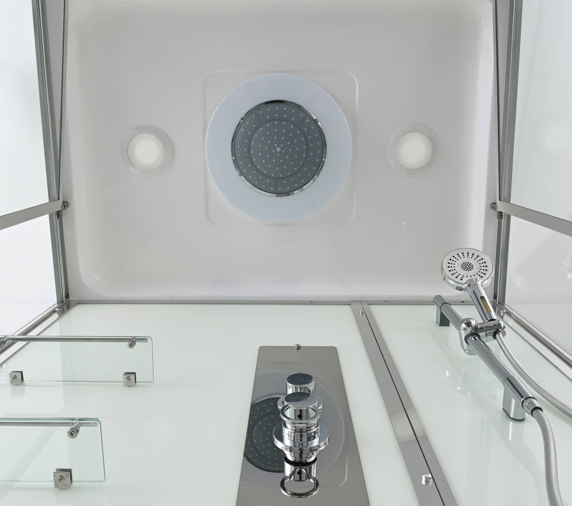 Стильная душевая кабина AvaCan сочетает в себе высокую функциональность, практичность и надежность. При изготовлении применяется безопасное закаленное стекло, надежно фиксируемое алюминиевым профилем. Профиль сделан из алюминия повышенной прочности. Сборка без силикона (увеличивает срок службы, защищает от протечек), внутренняя сборка (облегчает установку и ревизию; позволяет установить в ограниченном пространстве и обойтись без демонтажа других сантехнических приборов), смеситель резьбовой (без хомутов). Двойные металлические ролики дверей (распределение нагрузки на два ролика, увеличивают срок службы). Душевая штанга(позволяет регулировать по высоте ручную лейку), ручная арома-лейка с витамином С (картридж в комплекте,есть возможность замены или удаления картриджа), полочки(из стекла, с ограничителем), сифон с гидрозатвором.