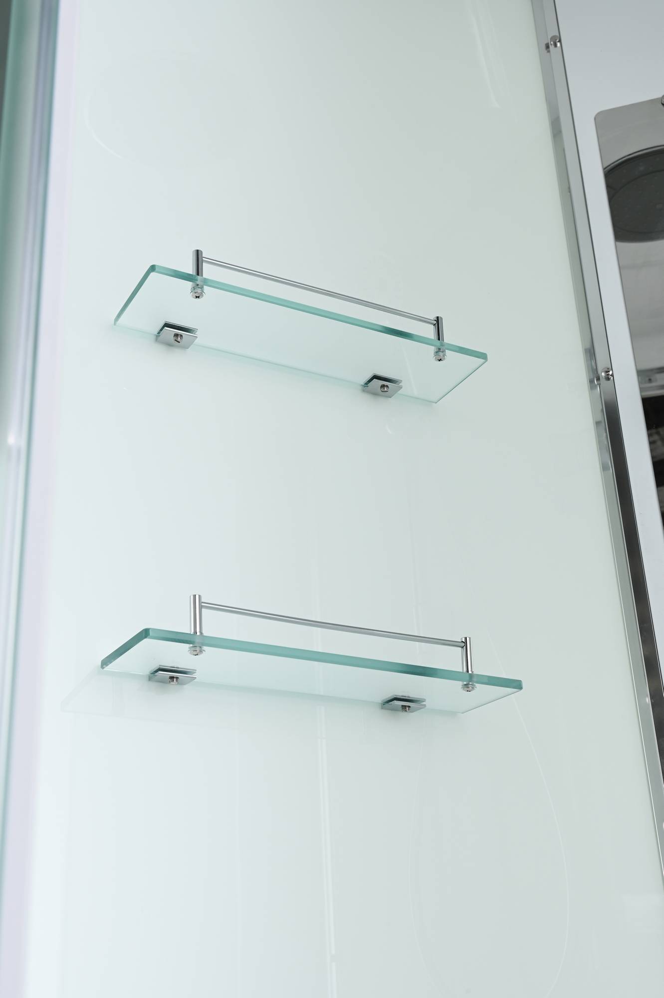 Стильная душевая кабина AvaCan сочетает в себе высокую функциональность, практичность и надежность. При изготовлении применяется безопасное закаленное стекло, надежно фиксируемое алюминиевым профилем. Профиль сделан из алюминия повышенной прочности. Сборка без силикона (увеличивает срок службы, защищает от протечек), внутренняя сборка (облегчает установку и ревизию; позволяет установить в ограниченном пространстве и обойтись без демонтажа других сантехнических приборов), смеситель резьбовой (без хомутов). Съемный экран поддона (позволяет осуществлять подключение и ревизию сифона).Двойные металлические ролики дверей (распределение нагрузки на два ролика, увеличивают срок службы). Душевая штанга(позволяет регулировать по высоте ручную лейку), ручная арома-лейка с витамином С (картридж в комплекте,есть возможность замены или удаления картриджа), полочки(из стекла, с ограничителем), сифон с гидрозатвором.