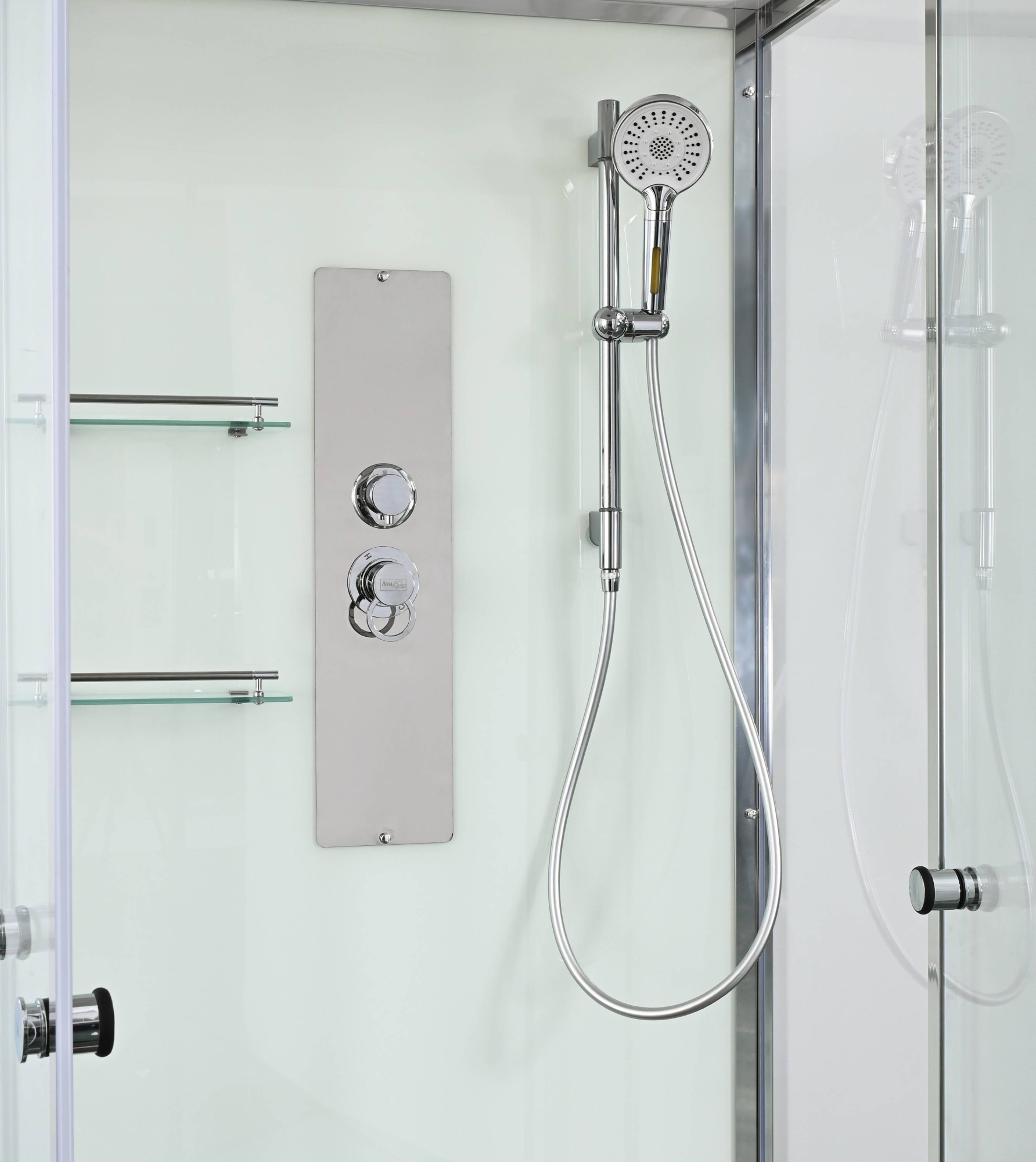 Стильная душевая кабина AvaCan сочетает в себе высокую функциональность, практичность и надежность. При изготовлении применяется безопасное закаленное стекло, надежно фиксируемое алюминиевым профилем. Профиль сделан из алюминия повышенной прочности. Сборка без силикона (увеличивает срок службы, защищает от протечек), внутренняя сборка (облегчает установку и ревизию; позволяет установить в ограниченном пространстве и обойтись без демонтажа других сантехнических приборов), смеситель резьбовой (без хомутов).Двойные металлические ролики дверей (распределение нагрузки на два ролика, увеличивают срок службы). Душевая штанга(позволяет регулировать по высоте ручную лейку), ручная арома-лейка с витамином С (картридж в комплекте,есть возможность замены или удаления картриджа), полочки(из стекла, с ограничителем), сифон с гидрозатвором.