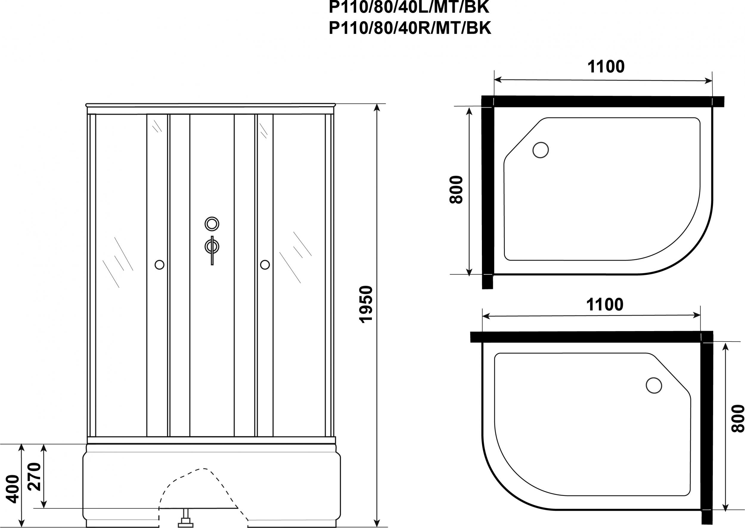 Характеристики Душевая кабина Niagara (P110/80/40L/MT/BK)