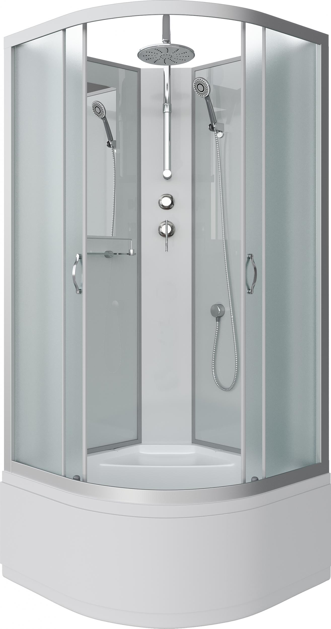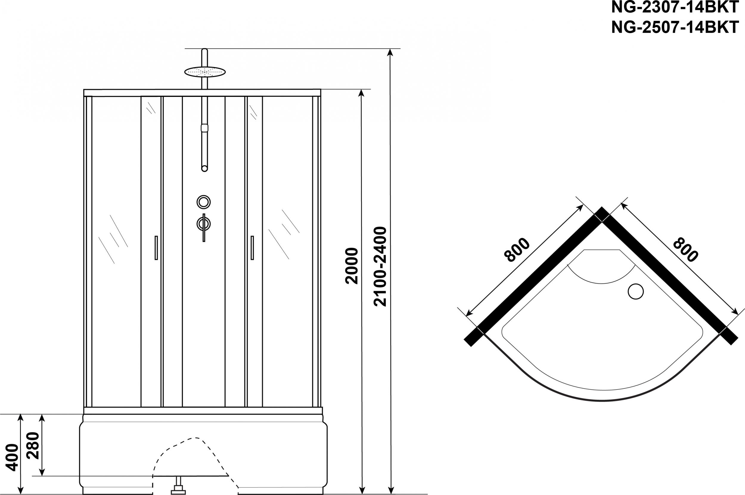 Душевая кабина Niagara NG-2307-14BKT с высоким поддоном, размер 800x800x2400 мм, профиль серебро, стекло матовое, вход 500 мм.