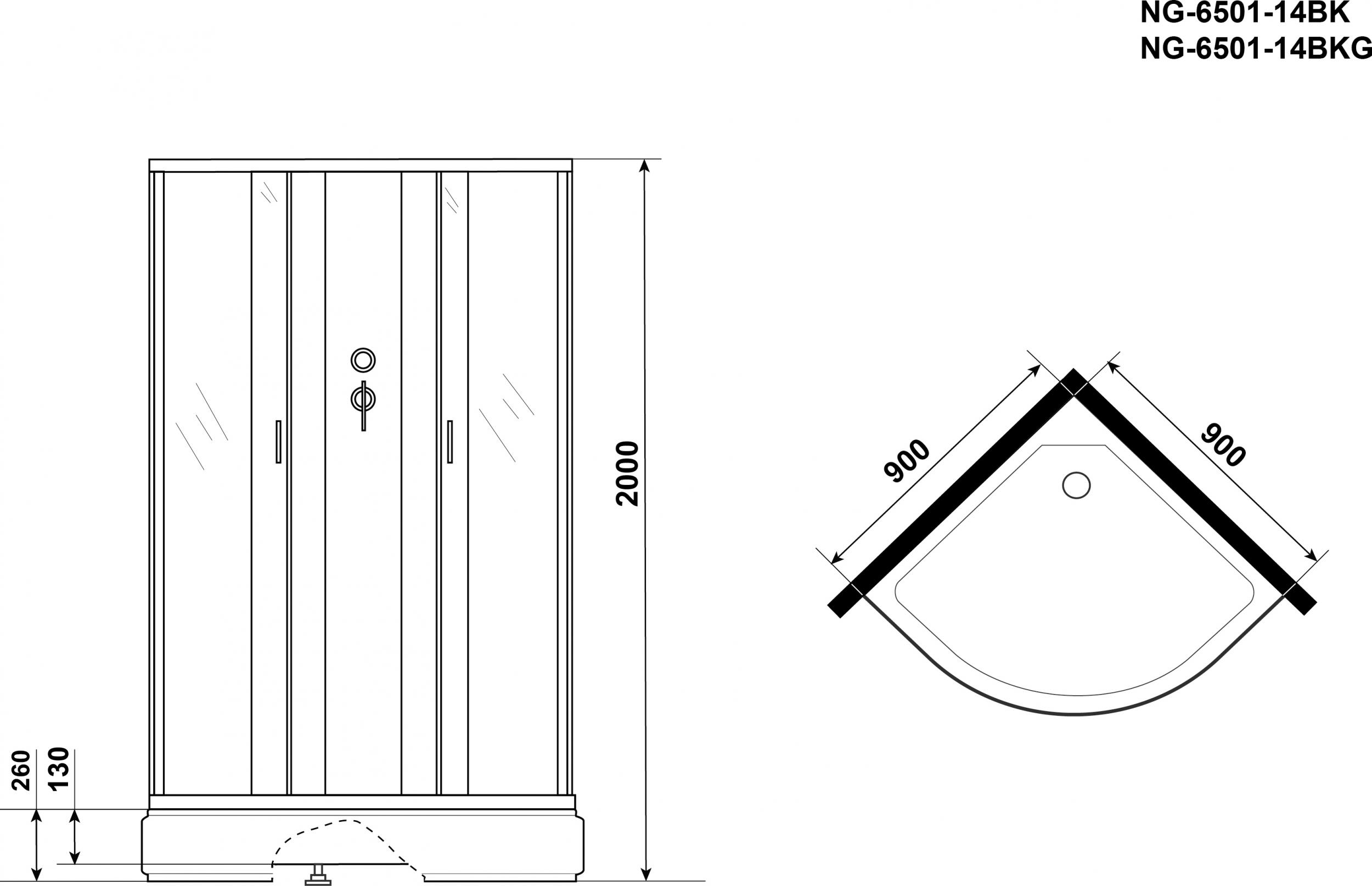 Душевая кабина Niagara 90x90 см NG-6501-14BK, чёрный/тонированное