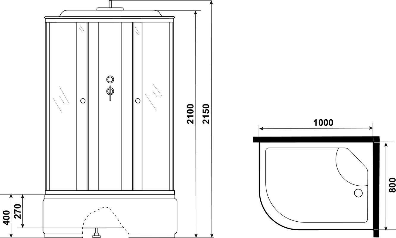 Душевая кабина Niagara Eco E100/80/40R/TN с высоким поддоном, размер 1000x800x2150 мм, правосторонняя, цвет задних стенок чёрный, ширина входа 460 мм. Высокий поддон и сифон в комплекте.