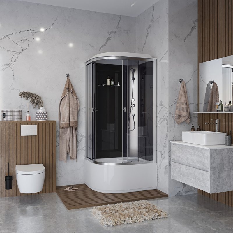 Душевая кабина Niagara Eco E90/70/40R/TN с высоким поддоном, размер 900x700x2150 мм, правосторонняя, цвет задних стенок чёрный, ширина входа 380 мм. Высокий поддон и сифон в комплекте.