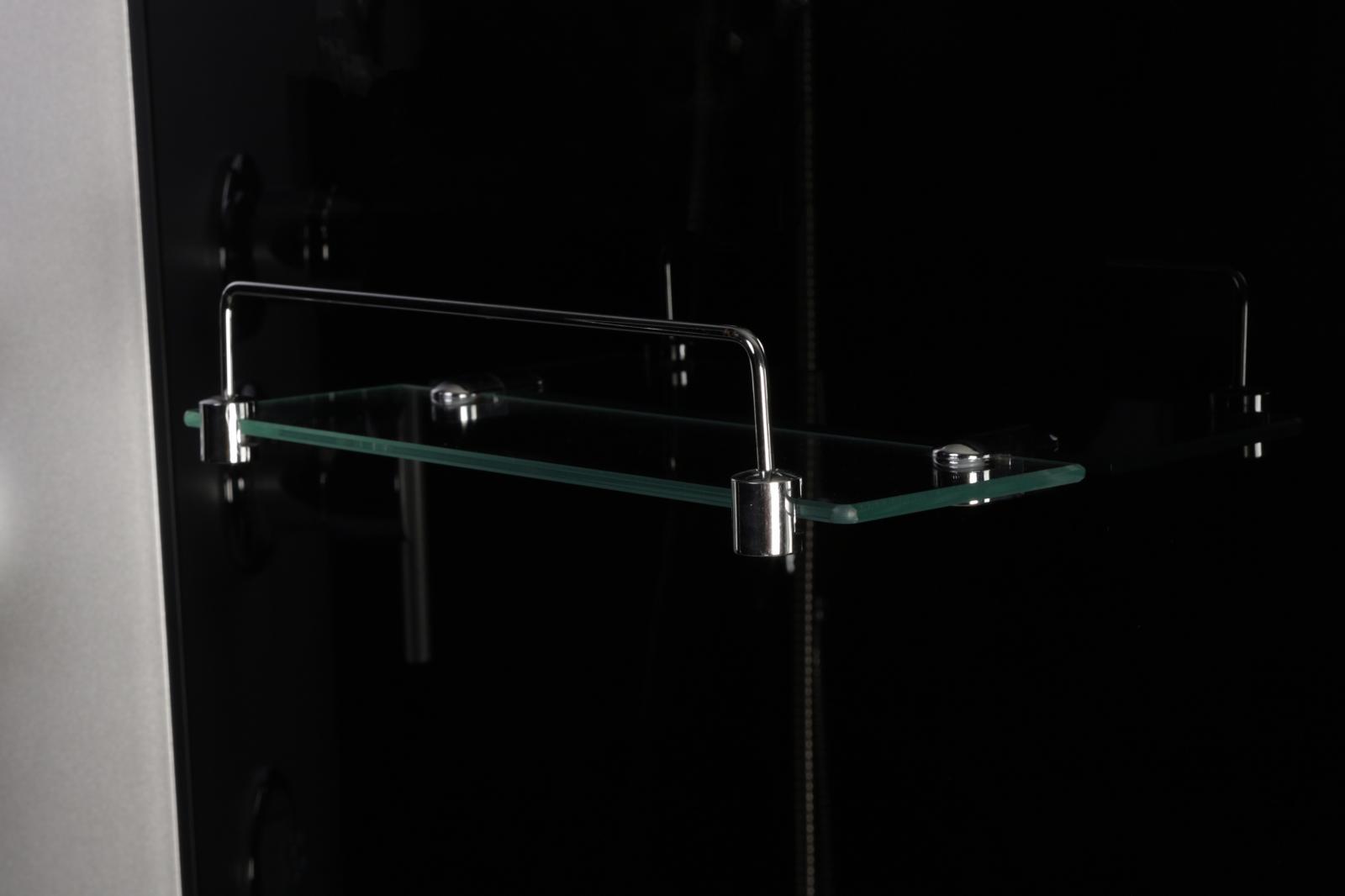 - Комплектация: Поддон, панель, сифон, профиль, передние и задние стенки, двери, тропический душ, дополнительная лейка, ролики, полочка.