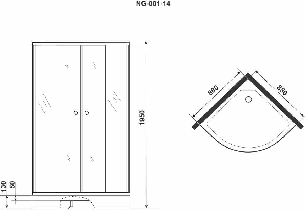 Душевое ограждение Niagara Eco NG-001-14 с низким поддоном, размер 880x880x1950 мм. Низкий поддон и сифон в комплекте.