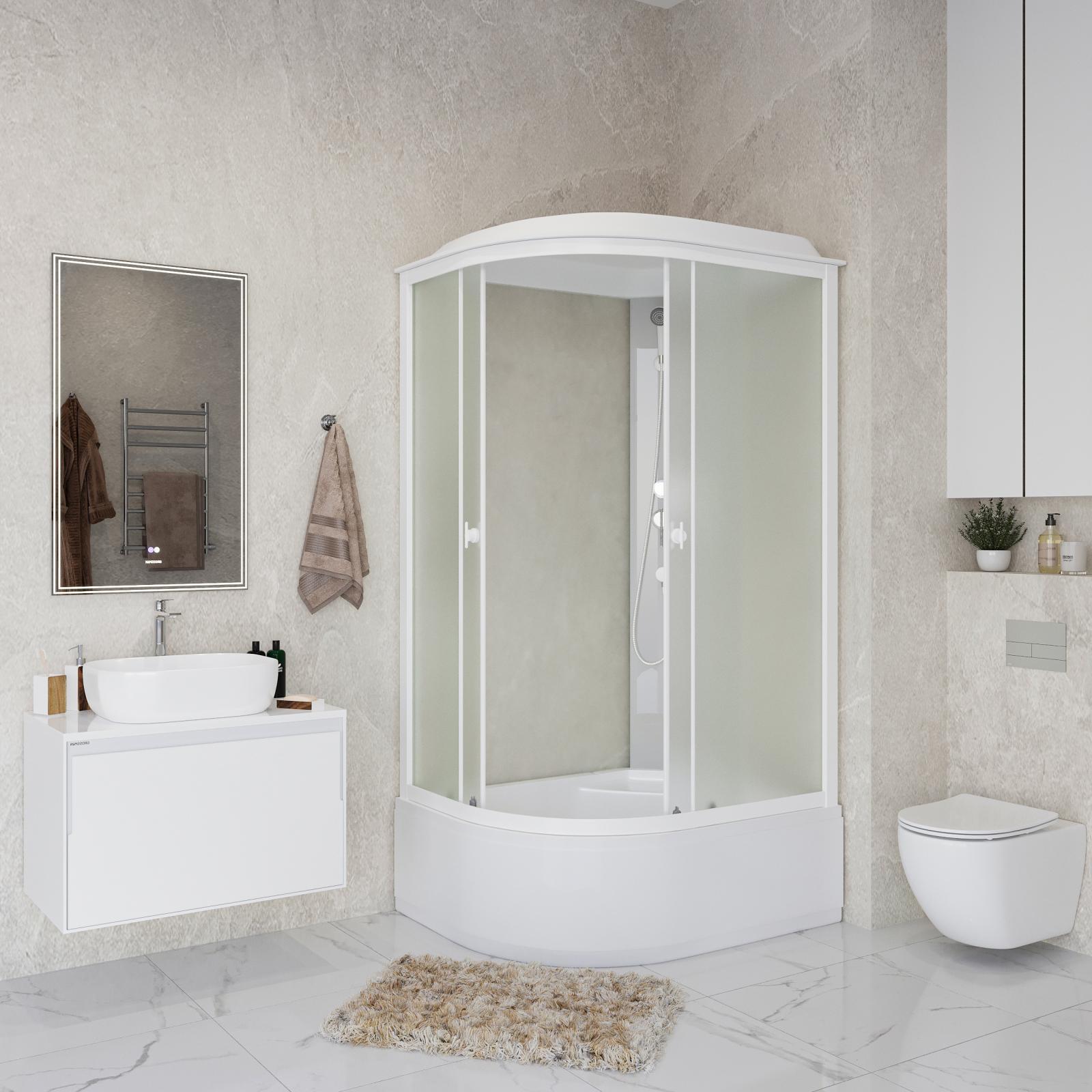 - Стенки передние закаленное стекло 4 мм - белое матовое.