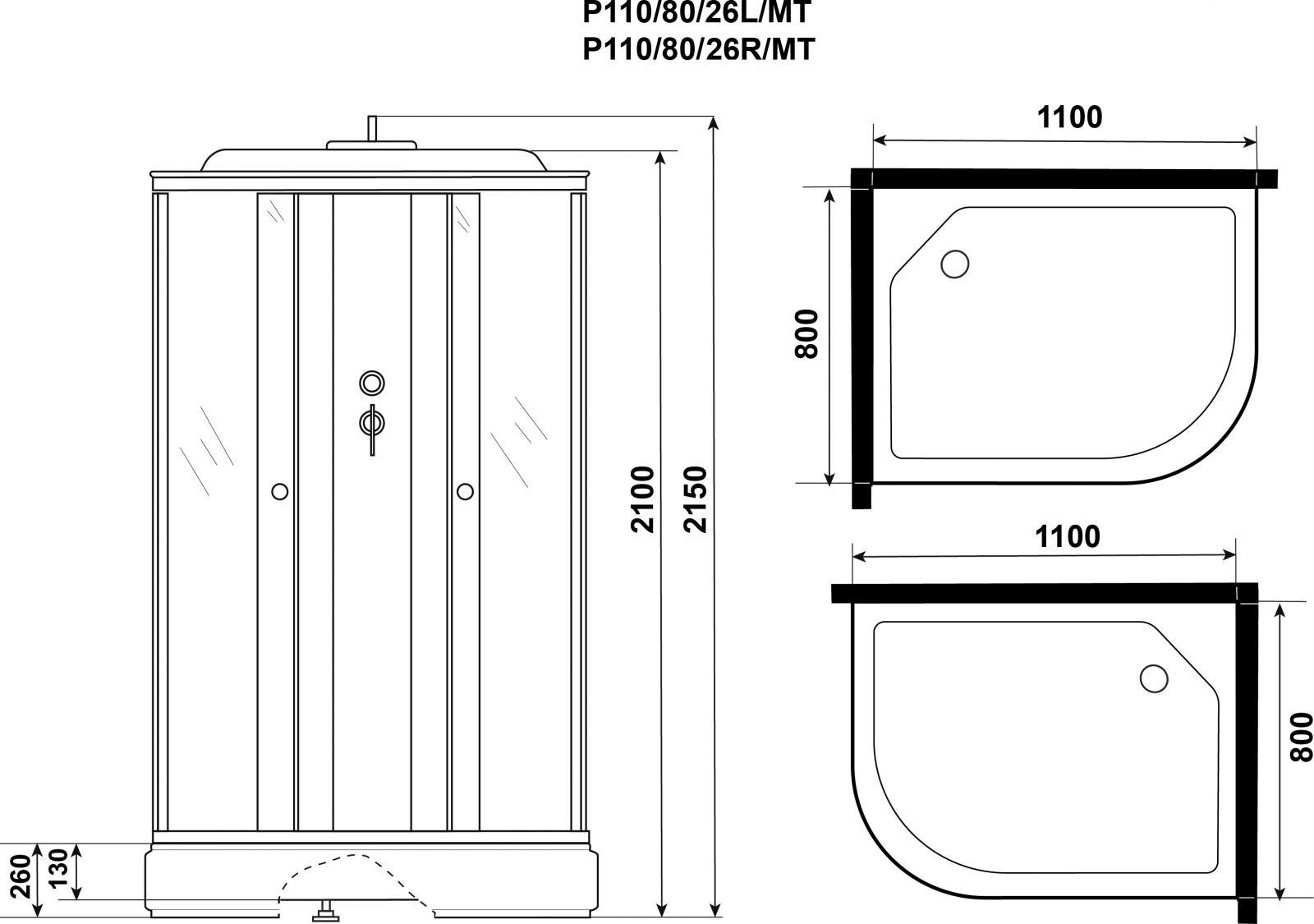 Описание Душевая кабина Niagara P110/80/26L/MT