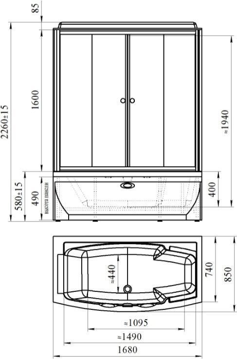 Душевая кабина Радомир Элис 1680х850х2260 мм с высоким поддоном 580 мм, стекло - прозрачное, 6 мм, профиль - белый.