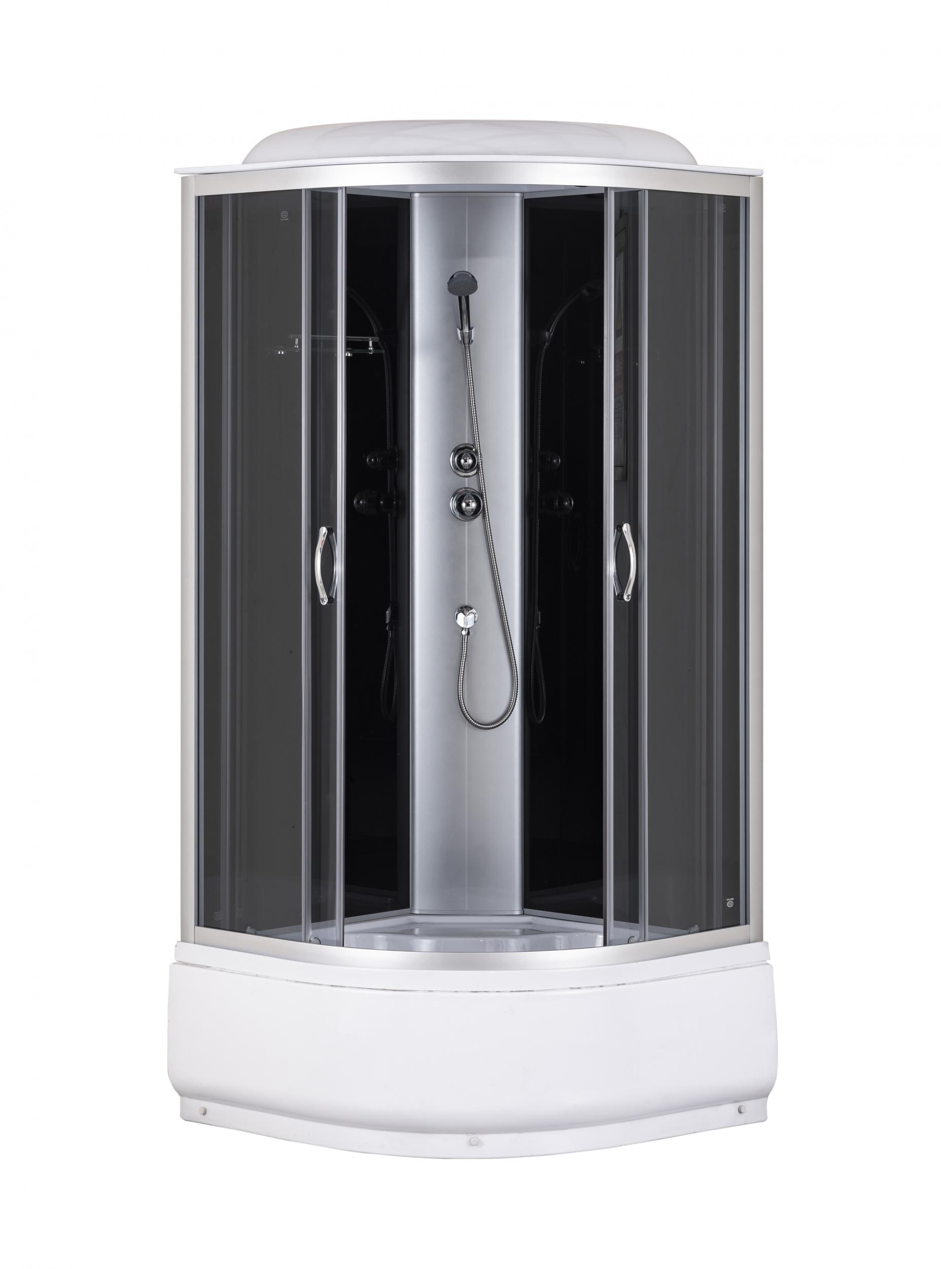 Душевая кабина Taliente TA-9090G, задние стенки - чёрные, профиль - матовый хром, стекло - тонированное 4 мм, ширина входа - 490 мм.