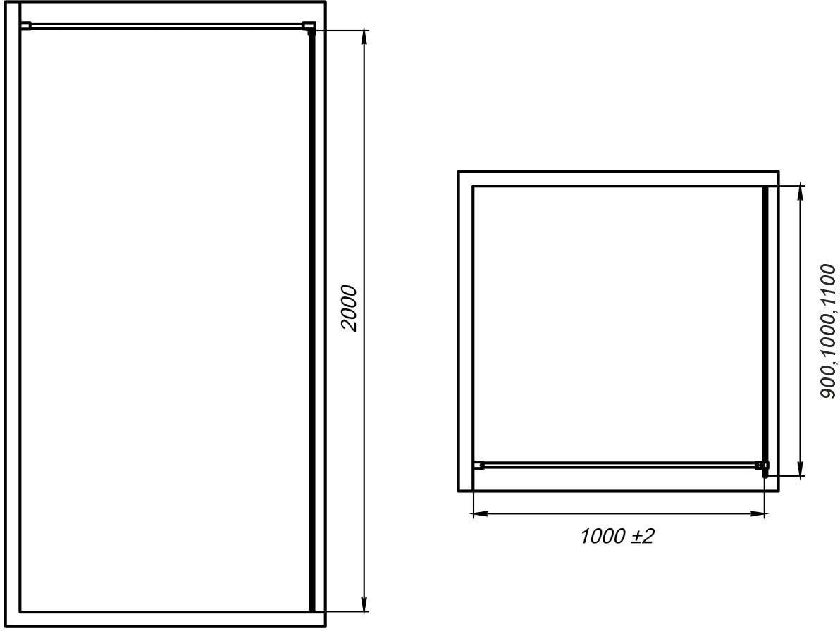 Душевая перегородка Mirsant Walk in 90 см с аксессуарами (стекло 8 мм) чёрный/матовое