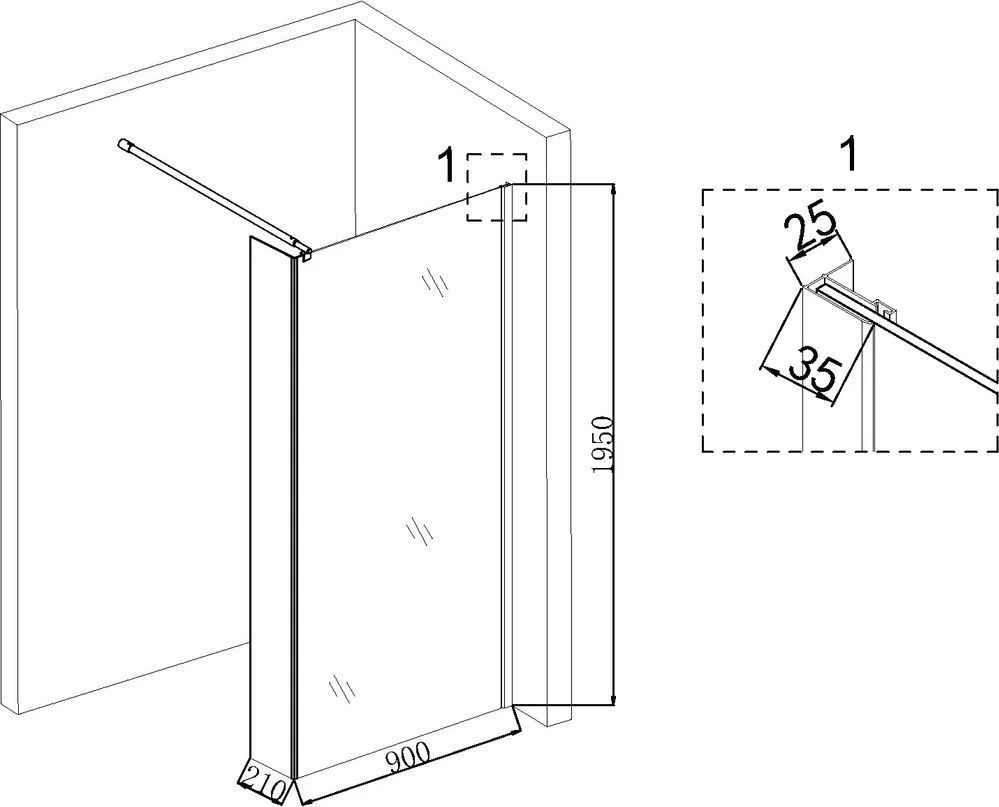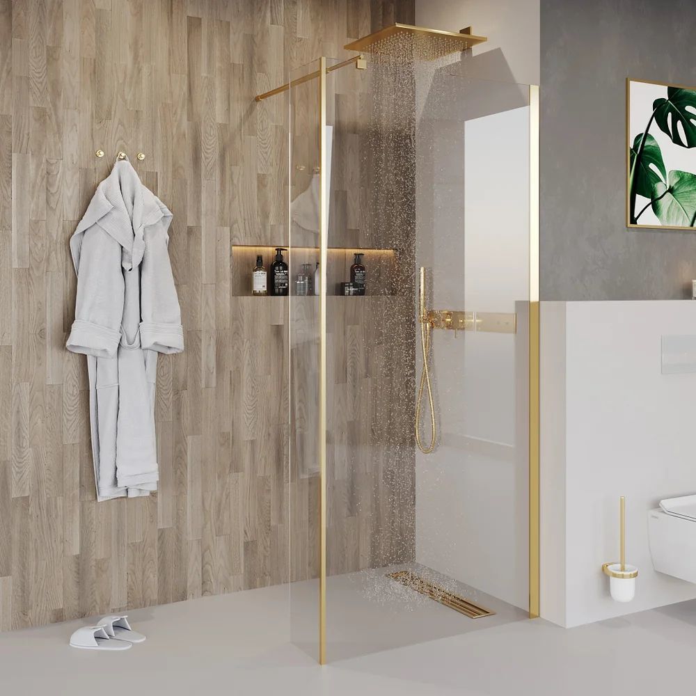 Душевая перегородка Niagara Nova NG-644-90GOLD 900х1950 мм с кронштейном, профиль - холодное золото, стекло - прозрачное, 6 мм. Поддон приобретается отдельно.