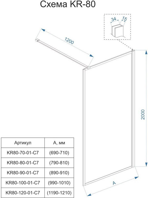 Описание Душевая перегородка Veconi KR80-120-01-C8