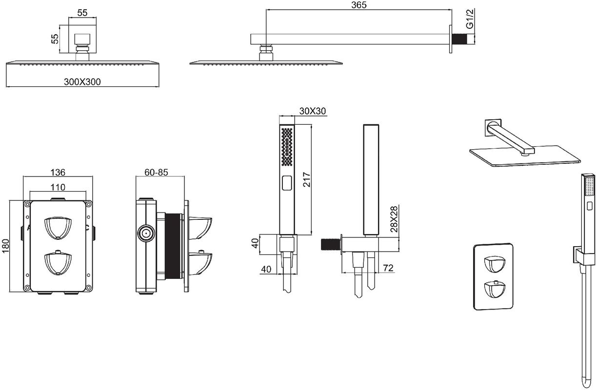 • Верхний душ SLIM SUS304, 300х300 мм