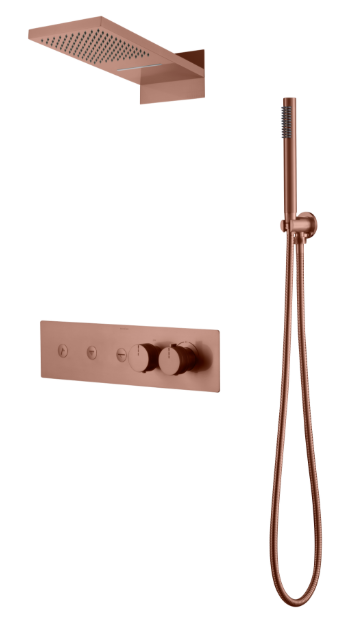 Душевая система для душа с термостатом Boheme Fusion 131-CB со скрытой частью, материал латунь, цвет брашированная медь.