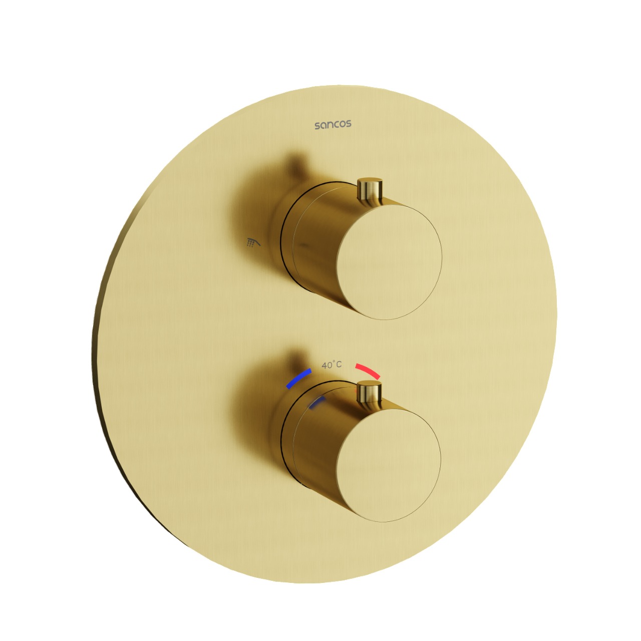 Душевая система для душа с термостатом Sancos Etna SC9010BG со скрытой частью, материал - латунь, цвет -  брашированное золото.