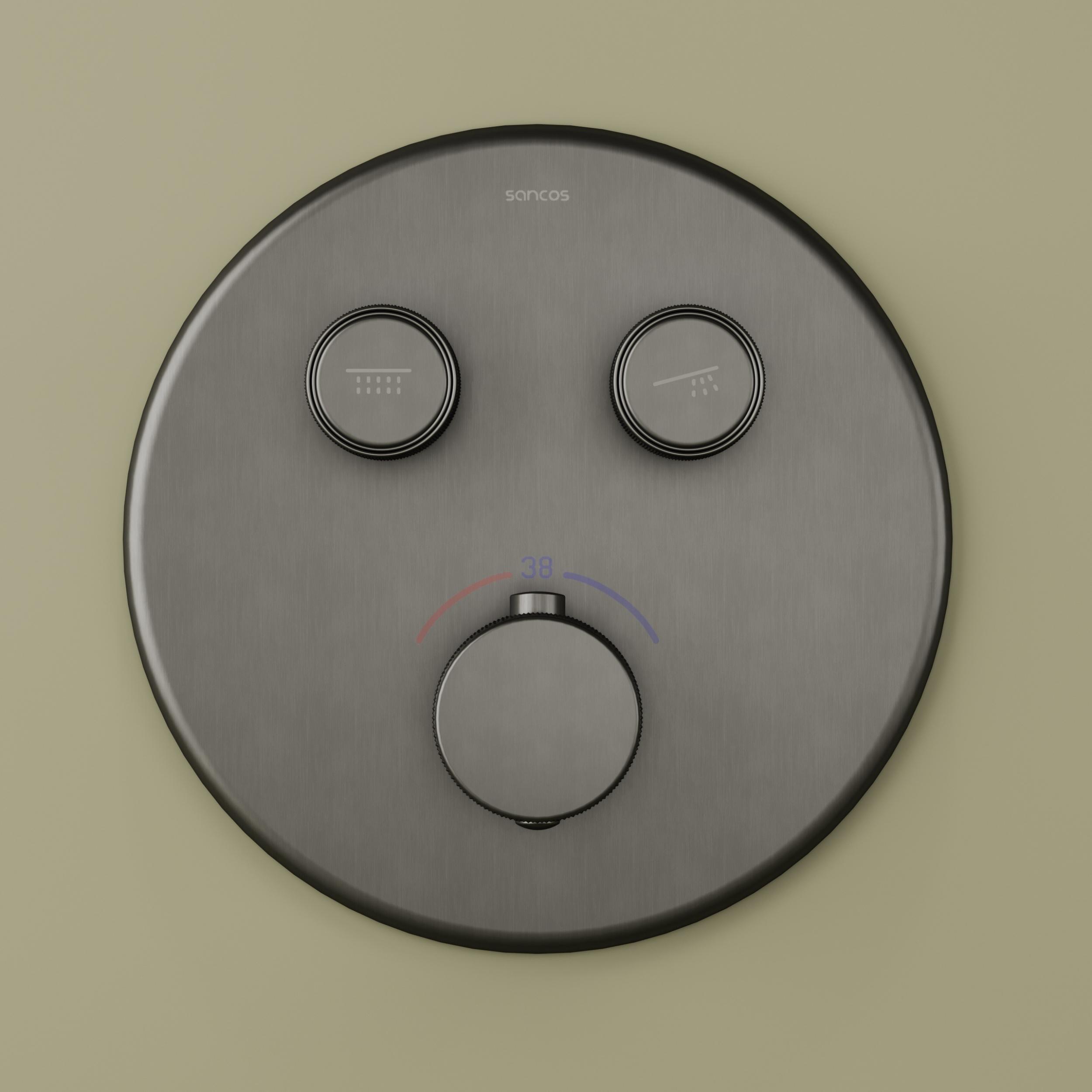 Душевая система для душа с термостатом Sancos Space SC3006GMG со скрытой частью, материал - латунь, цвет - вороненая сталь.