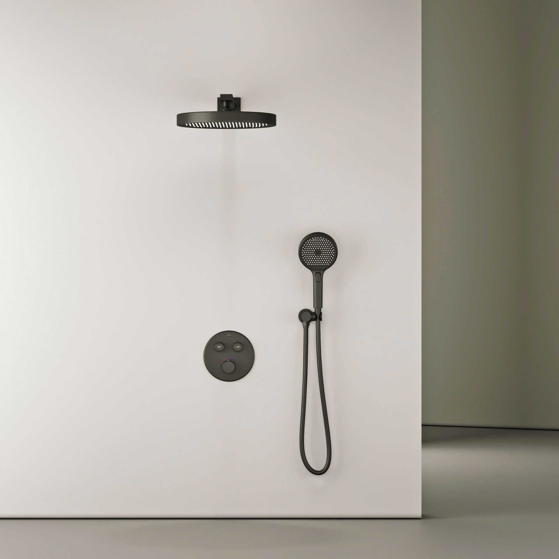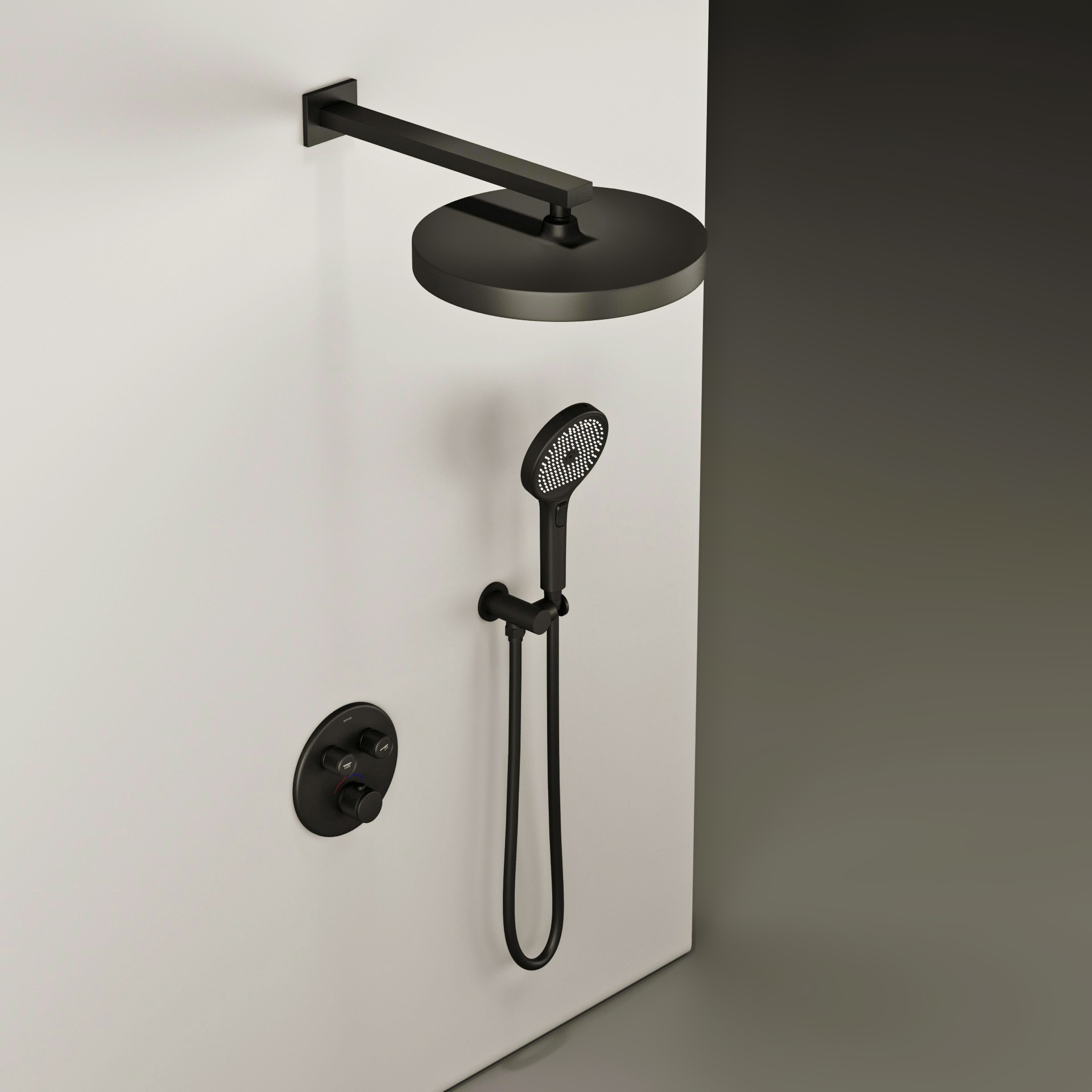 Душевая система для душа с термостатом Sancos Space SC3006MB со скрытой частью, материал - латунь, цвет - чёрный матовый.