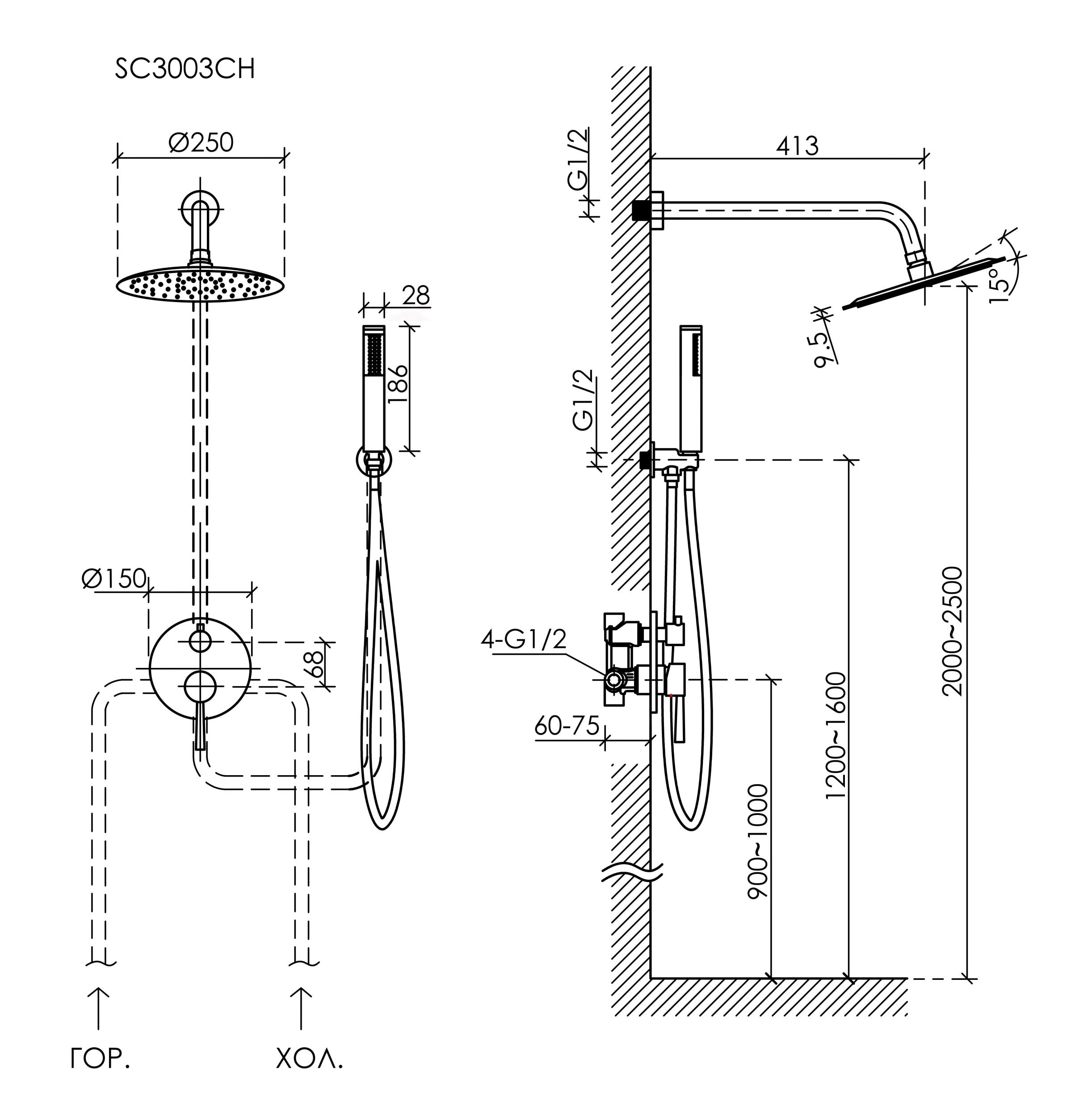 Описание душевая система без излива Sancos SC3003MB