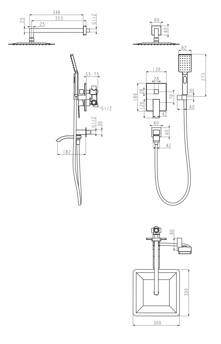 Характеристики душевая система с изливом Grocenberg (GB5007NK)