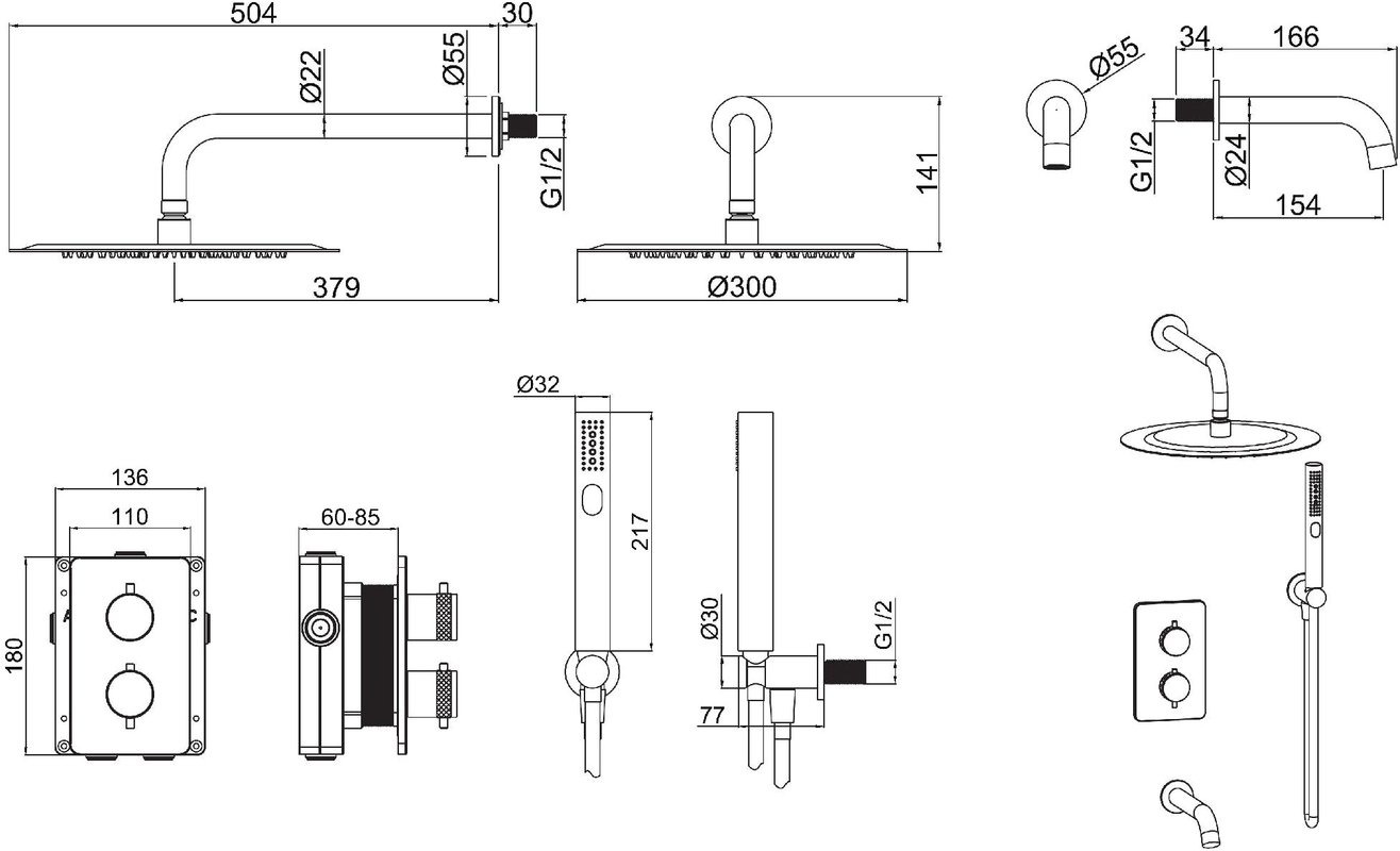 Характеристики душевая система с изливом Allen Brau (5.31014-00)