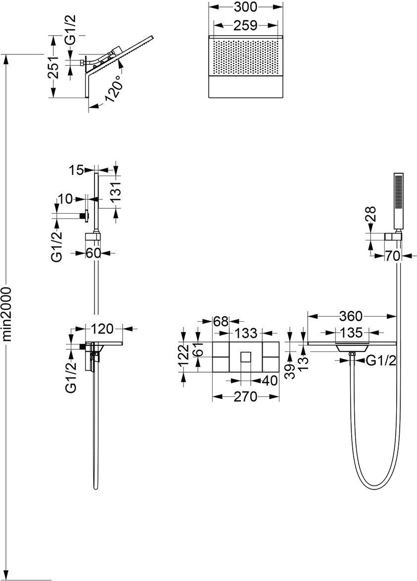 Душевая система для ванны с термостатом Vincea Futura VSFW-2F11TGM, материал - латунь, цвет - вороненая сталь.
