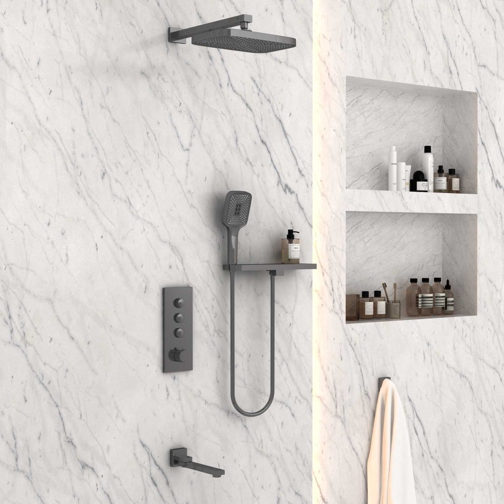 Душевая система для ванны с термостатом Vincea VSFW-431T1RGM, вороненая сталь