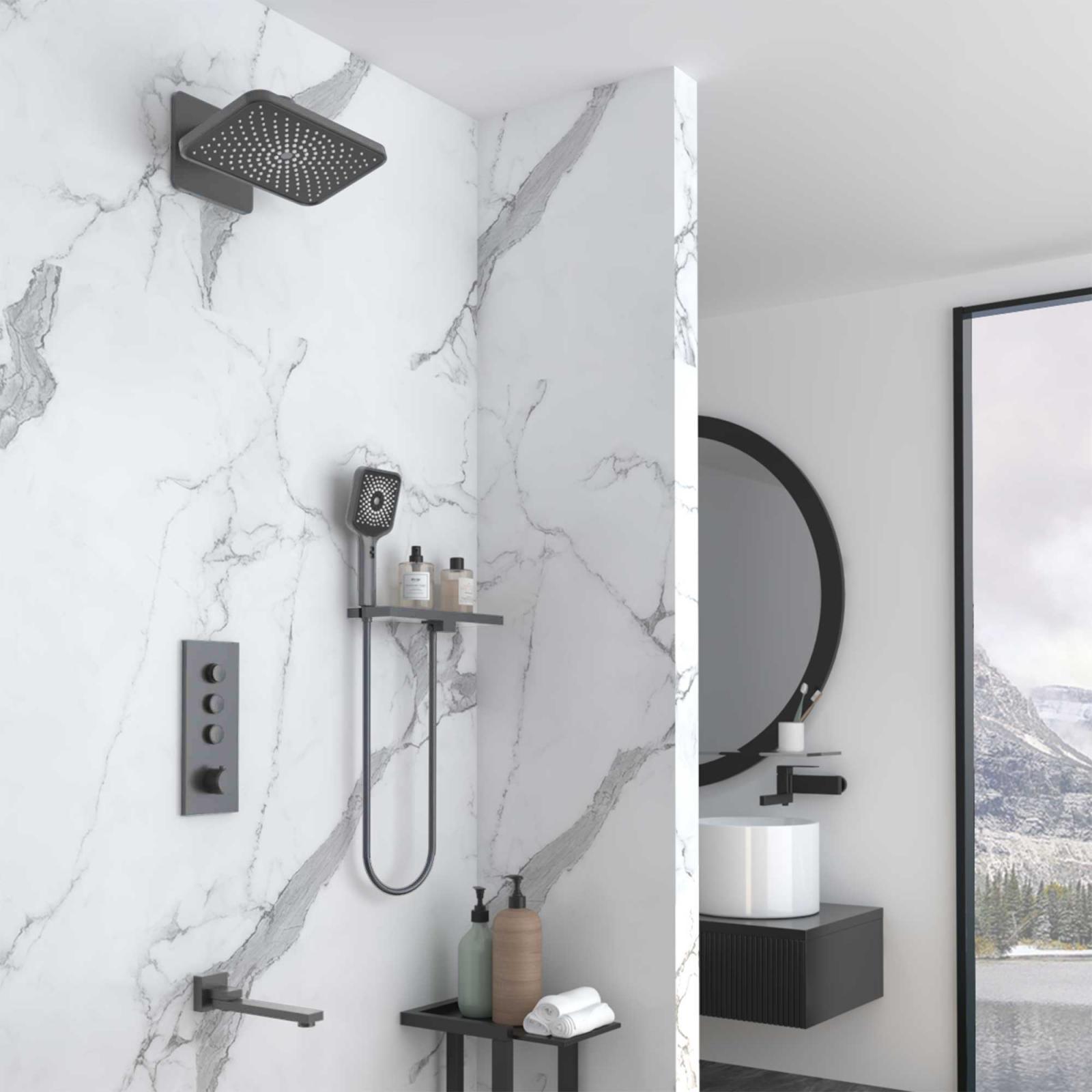 Душевая система для ванны с термостатом Vincea VSFW-433TI4RGM, вороненая сталь
